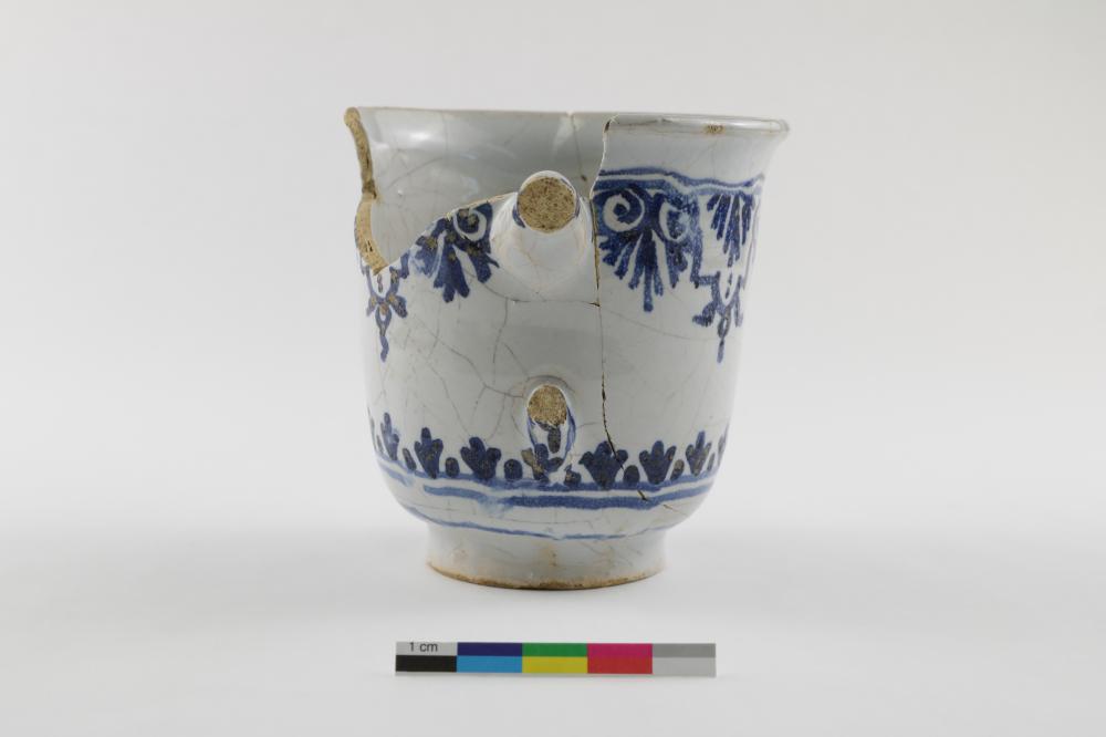 La tasse à chocolat a été sélectionnée pour la collection archéologique de référence du Québec, car elle constitue un exemple de faïence à décor de lambrequins sommairement exécutés.
