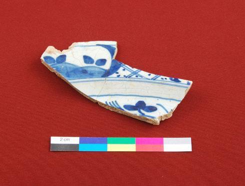 Les fragments proviennent d'une assiette en faïence blanche de grand feu fabriquée en Hollande méridionale entre 1690 et 1750. Le profil de cette assiette ainsi que sa légèreté et son décor peint en bleu d'inspiration chinoise sont typiques de la production hollandaise mise au point à Delft vers 1690, sa production se poursuivant jusqu'en 1750. Les échanges commerciaux entre la France et les Pays-Bas reprennent après la signature du traité de paix en 1713, qui met fin à la guerre de Succession d'Espagne. Elle est donc importée en Nouvelle-France entre 1713 et 1750.