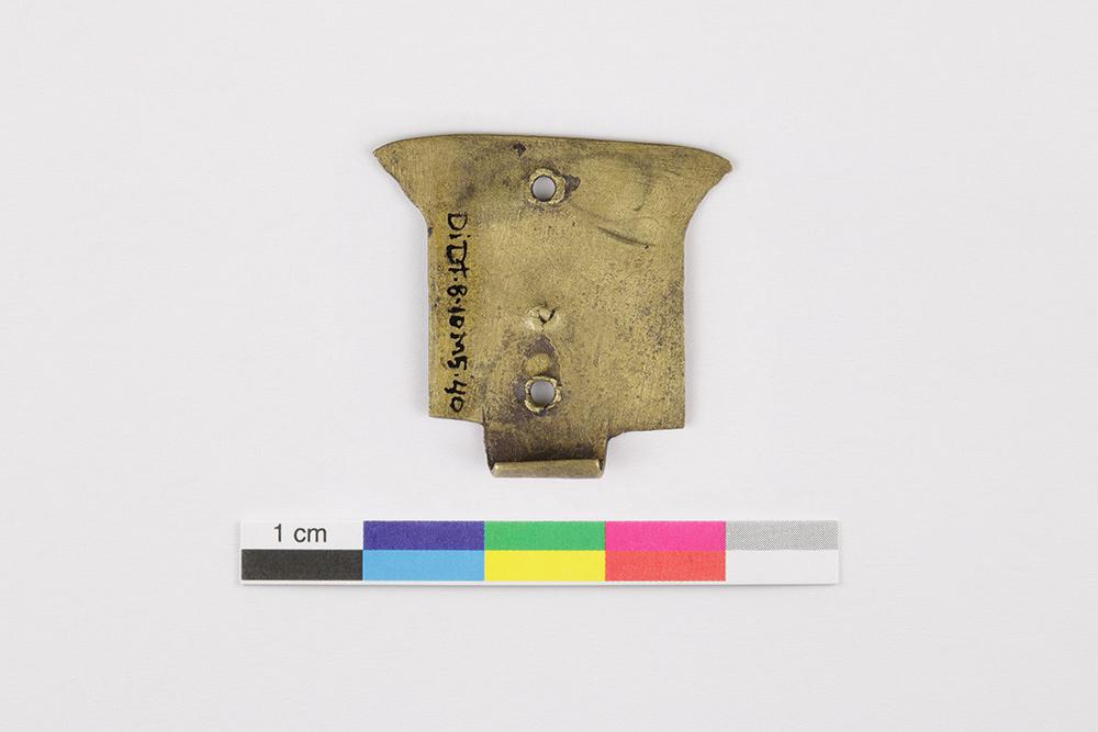 Cartouchière ou giberne et attache. Détail sous l'attache