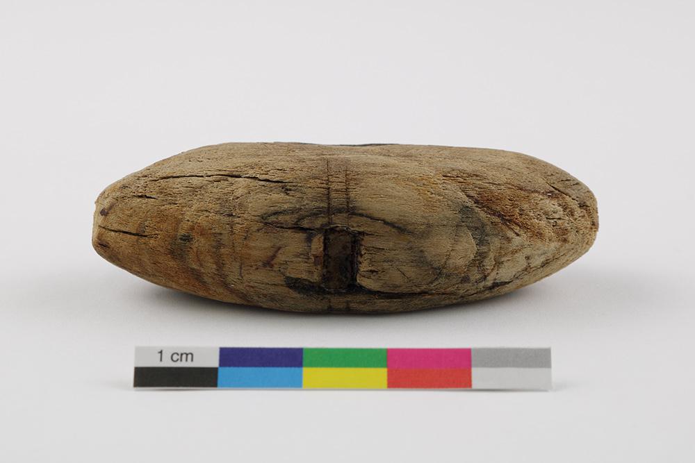 Le manche de vrille, fabriqué avant 1690, est lié à un outil servant au travail du bois. Il est fait en bois et comporte un morceau de soie en fer à l'intérieur. De forme ovoïde, il mesure 6,9 cm de longueur, 2,7 cm de hauteur et 2,0 cm d'épaisseur. La lettre W est incisée sur les deux faces du manche, mais sur l'une d'elles, la lettre V semble être superposée au W.