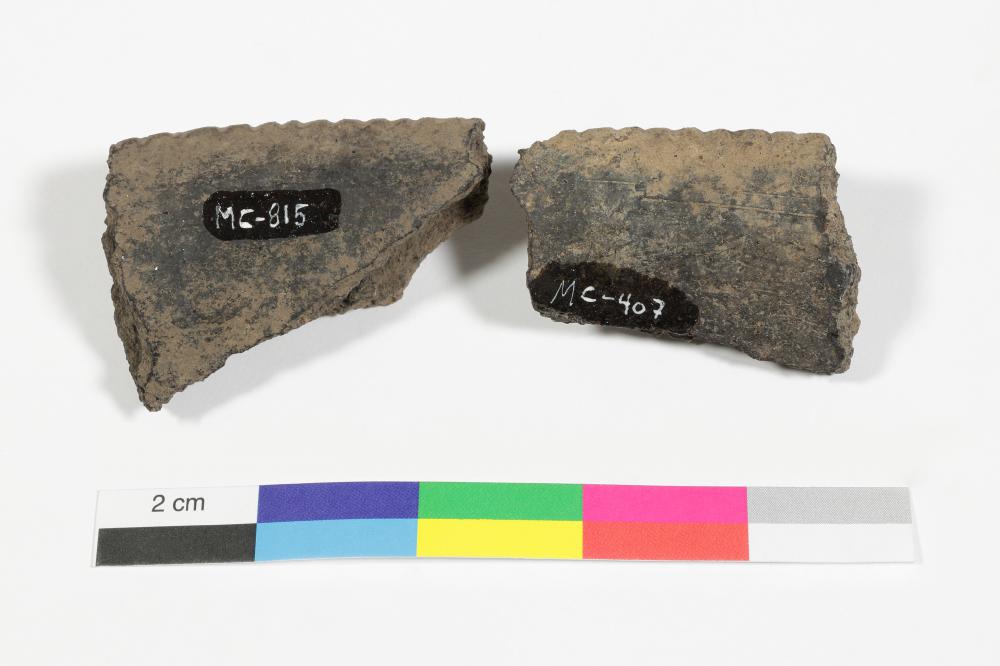 Les fragments de vase à parement font partie de la collection archéologique de référence du Québec, car ce vase à parement décoré de croisillons constitue un exemple de la présence de ce motif à la période récente du Sylvicole supérieur, soit de 650 à 450 ans avant aujourd'hui.