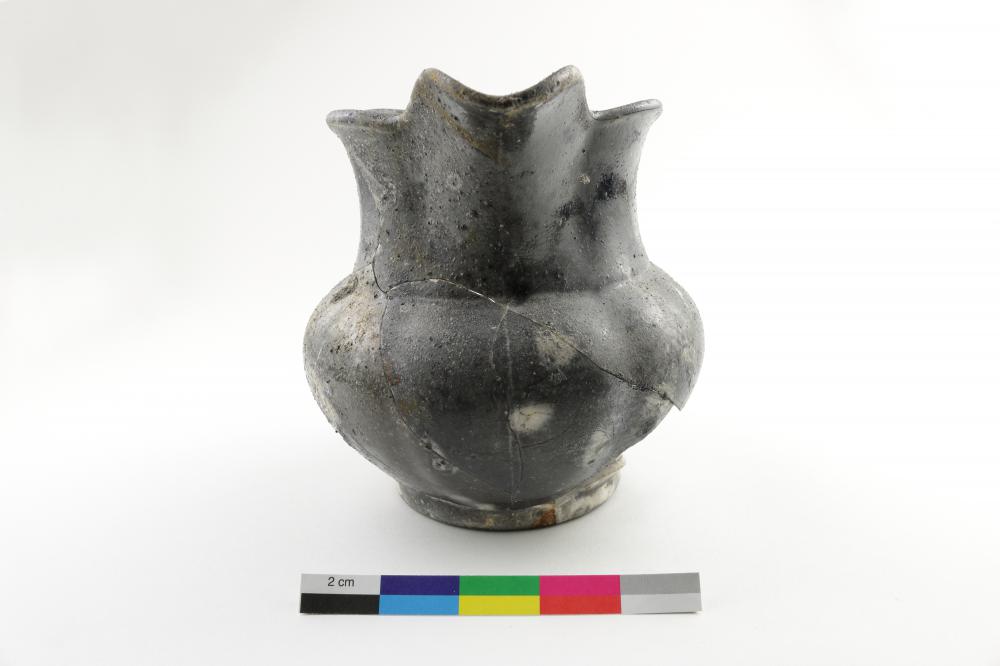Glaçure complètement altérée et noircie. La forme est intacte.
