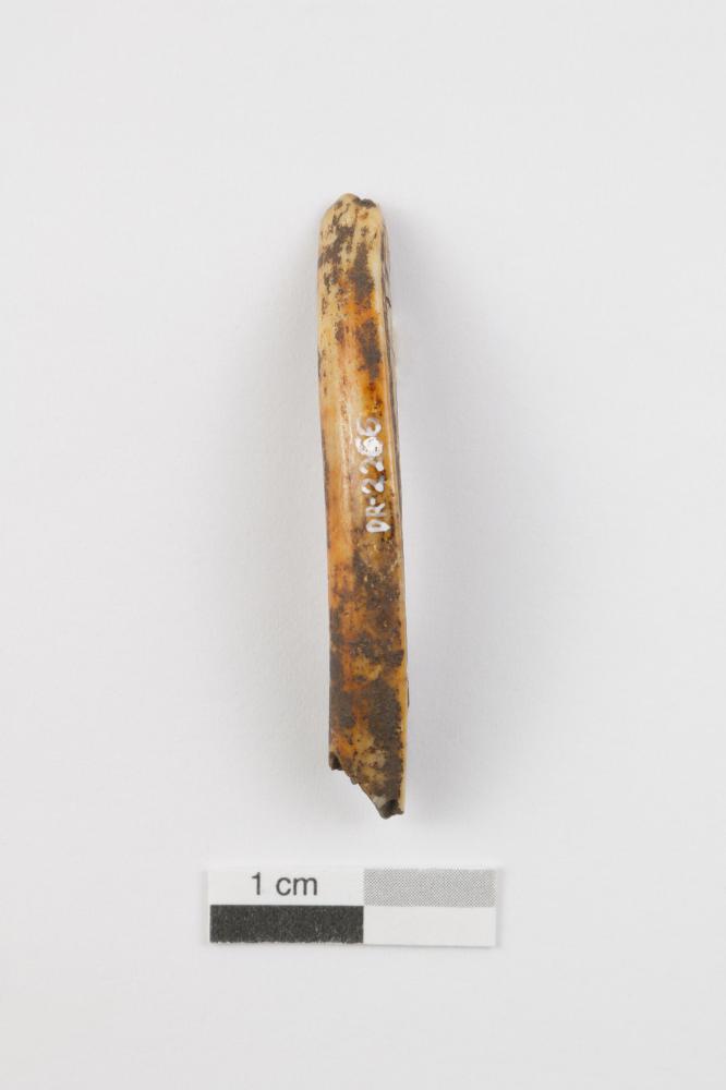 L'incisive de castor ouvragée a été sélectionnée pour la collection archéologique de référence du Québec, car elle témoigne de la modification de dents animales par les Iroquoiens du Saint-Laurent pour la production d'outils au cours du Sylvicole supérieur (1 000 à 450 ans avant aujourd'hui).