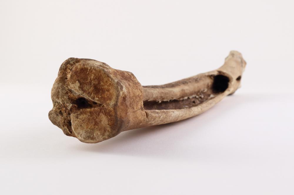 L'épilateur est un outil lié à la préparation des peaux fabriqué au cours de la seconde moitié du XIXe siècle. L'objet en os est fabriqué à partir d'un métapode de caribou dont l'extrémité, correspondant à l'ouverture médullaire, est affûtée pour former un tranchant. Des fissures longitudinales sont situées près des extrémités. L'artéfact mesure 28,8 cm de longueur, a une largeur maximale de 4,5 cm et l'ouverture médullaire mesure 18,5 cm.