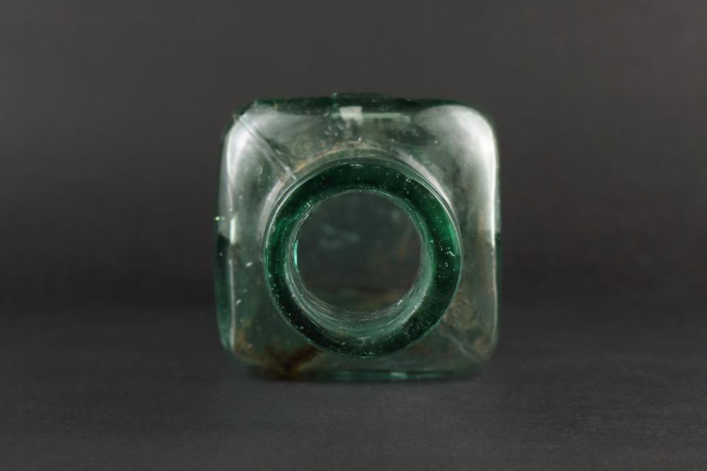 La bouteille a été retrouvée au cours de travaux d'excavation mécanique de remblais postérieurs à l'abandon du cimetière de la première église de Longueuil et au dérasement de la surface du terrain pour l'aménagement d'une place publique vers 1847.